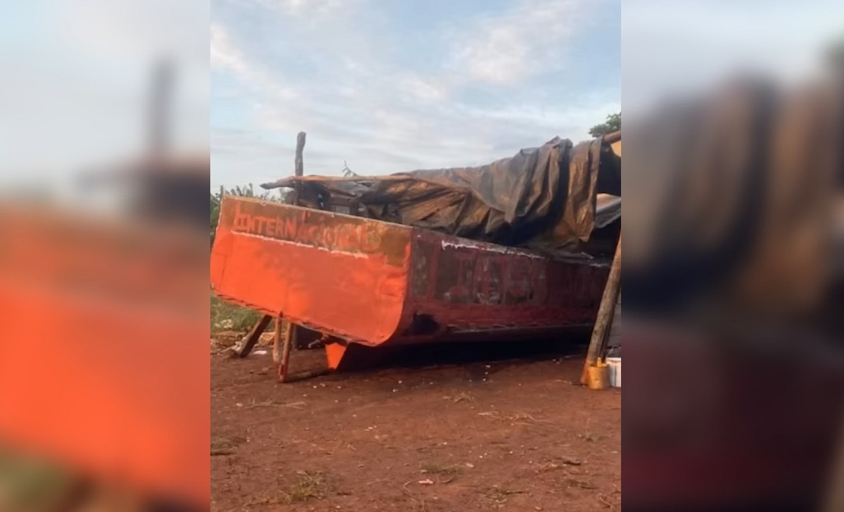 La hermana de una de las personas desaparecidas también compartió la fotografía del bote rojo de madera que habría sido utilizado por los balseros, el cual tenía la palabra “Internacional” a los costados.