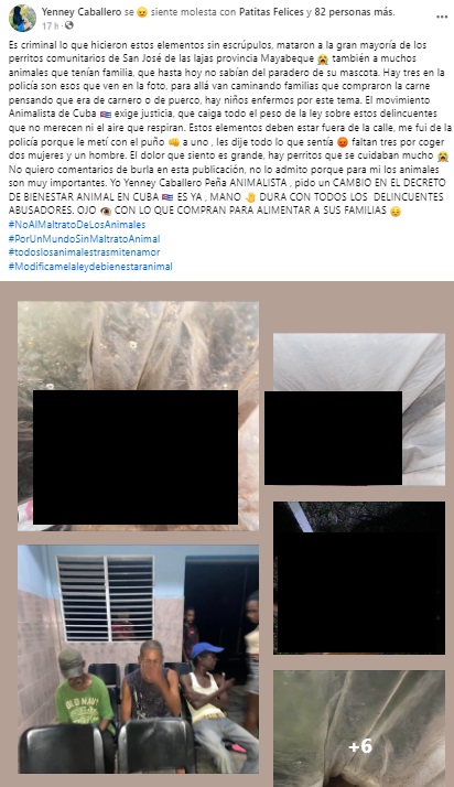 “Es criminal lo que hicieron estos elementos sin escrúpulos. Mataron a la gran mayoría de los perritos comunitarios de San José de las Lajas, provincia Mayabeque, también a muchos animales que tenían familia y que hasta hoy no sabían del paradero de su mascota”, denunció indignada Caballero.