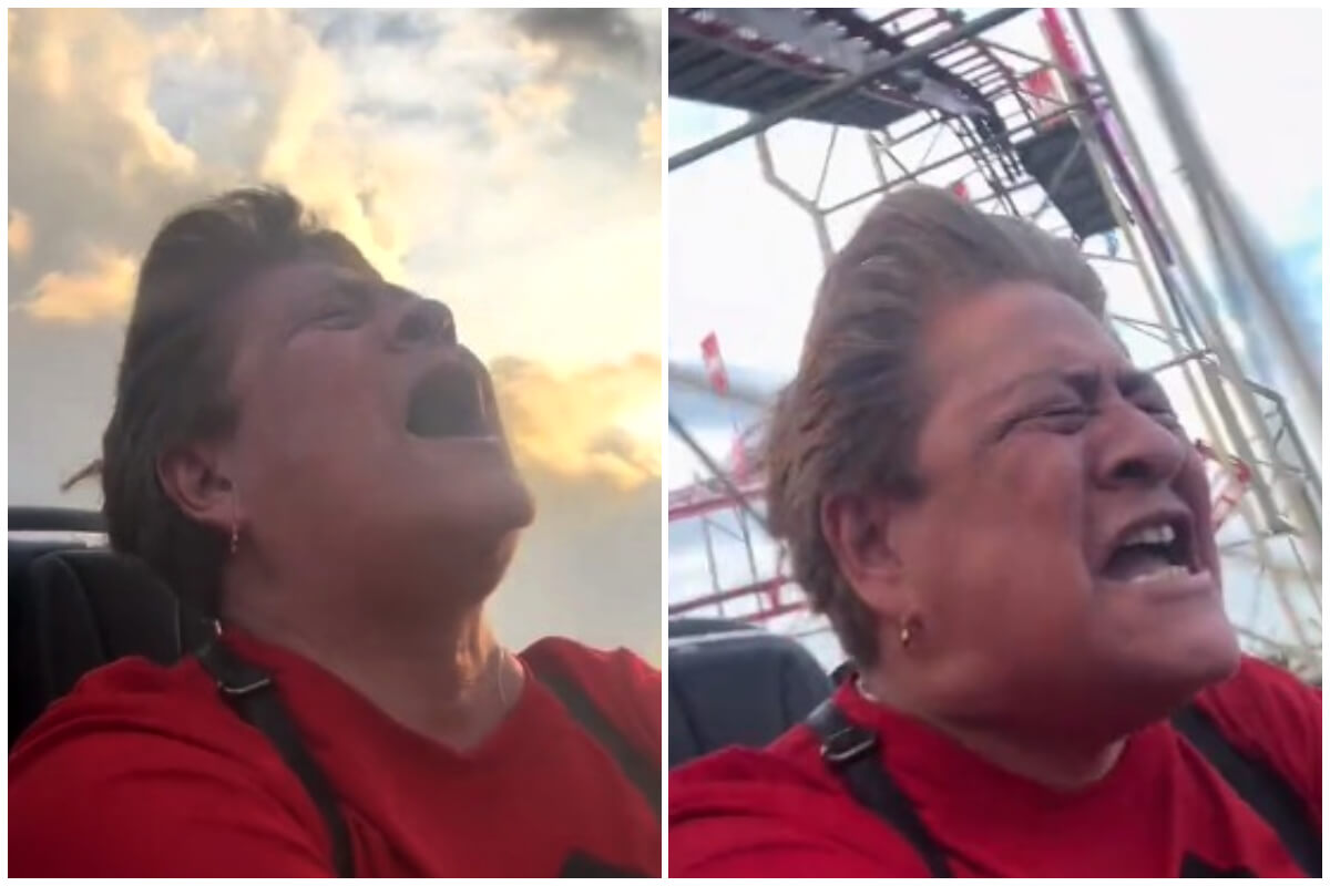 La graciosa reacción de la mujer en los juegos mecánicos del parque de diversiones causó gran furor en redes sociales