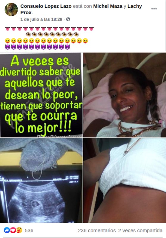 La nueva compañera del músico, conocida en los barrios de La Habana como ‘La Reina de La Lisa’, fue la que dio a conocer la noticia mediante una publicación de Facebook compartiendo unas imágenes donde mostraba su barriga de embarazada y una ecografía en la que se podía ver el feto.