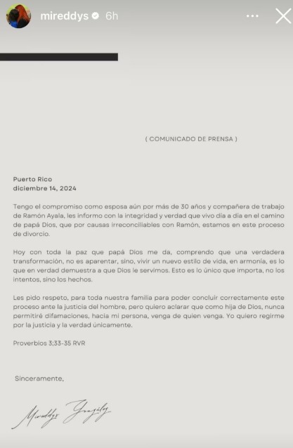 En su publicación, Mireddys pidió respeto para su familia mientras atraviesan esta situación legal. También dejó claro que no tolerará acusaciones falsas ni ataques a su persona.