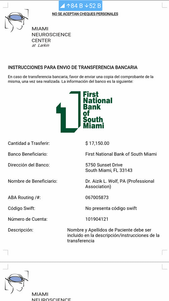 Para respaldar su publicación, anexó algunos documentos de la aprobación del neurociencia de Miami. Agregó también los datos de su tarjeta en dólares americanos “por si quieren brindar alguna ayuda”.