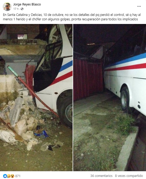 El incidente fue denunciado en el grupo de Facebook ‘Accidentes Buses & Camiones, por más experiencia y menos víctimas’, en donde también compartieron fotografías del vehículo incrustado en la vivienda.