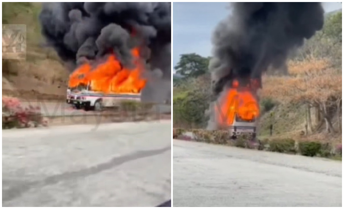 En las imágenes se observa a la guagua, un modelo Girón, completamente envuelta en fuego a un lado de la carretera. Momentos después, el vehículo aparece totalmente calcinado, dejando en evidencia la intensidad que alcanzaron las llamas.