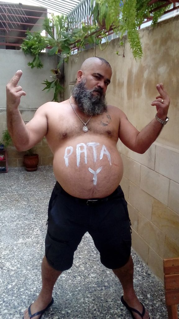Resulta que el pasado domingo, el intérprete de “Lucha tu yuca taino” publicó una foto en Facebook donde aparece con la frase “Pata y” pintada sobre su barriga. El músico acompañó la imagen con el caption “complete Ud. el título de mi nuevo tema”.