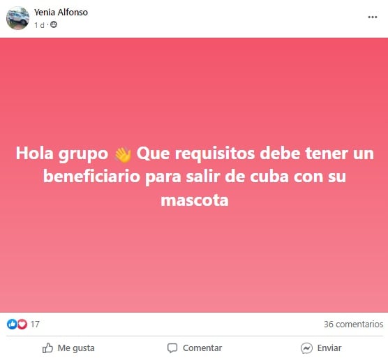 “La entrada del perro la debe solicitar un residente o ciudadano y el pasaje oscila en aproximadamente 200 dólares”, añadió la internauta Beatriz Pérez en una de estas publicaciones.