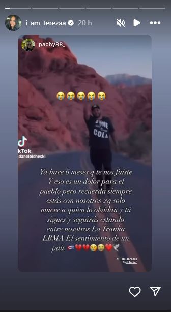 “Ya hace 6 meses que te nos fuiste y eso es un dolor para el pueblo, pero recuerda que siempre estás con nosotros, porque solo muere a quien lo olvidan y tú sigues y seguirás estando entre nosotros”, escribió en su historia.