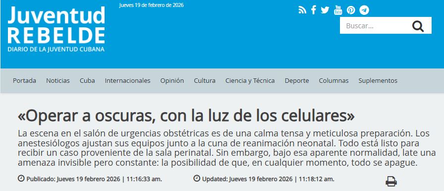 A través del medio oficialista Juventud Rebelde, la entrevista confirma que la falta de electricidad y el deterioro del equipamiento ponen en riesgo constante la vida de pacientes y el trabajo del personal sanitario.