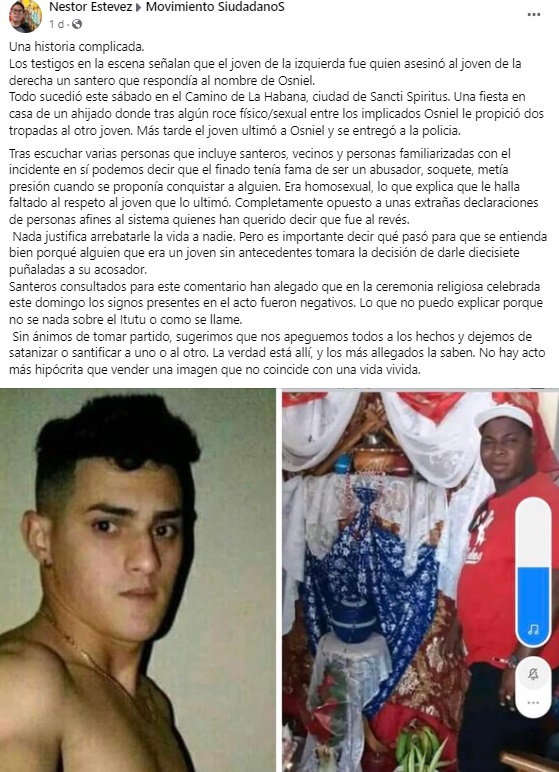 “Tras escuchar a varias personas, entre santeros, vecinos y personas familiarizadas con el incidente, sí podemos decir que el finado tenía fama de ser un abusador, zoquete y metía presión cuando se proponía conquistar a alguien”, se lee en la publicación.