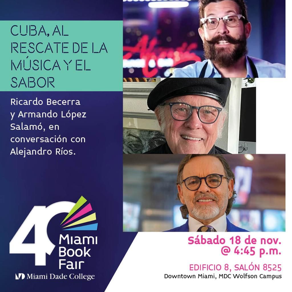 La 40.ª edición de la Feria del Libro de Miami se celebra este año del 12 al 19 de noviembre, y el conversatorio “Cuba al rescate de la música y el sabor”, con Ricardo Becerra, se presentará el próximo sábado 18 de noviembre en el salón 8525 del edificio 8 de la Miami-Dade College, en punto de las 4:45 pm.
