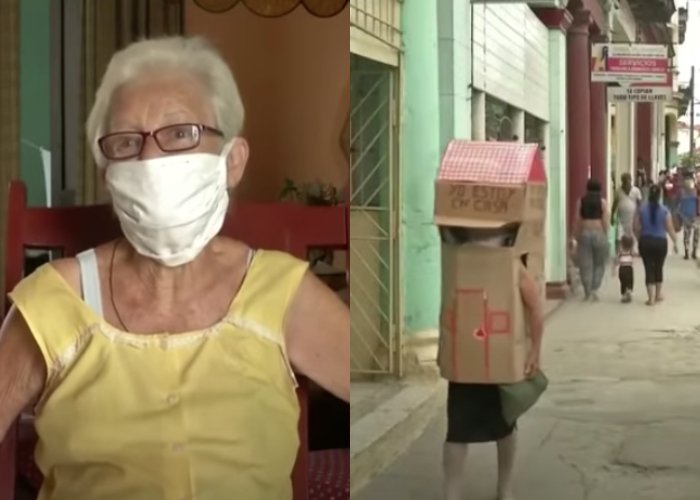 “Casa móvil de cartón”: El ingenioso traje de una cubana de 82 años contra el coronavirus