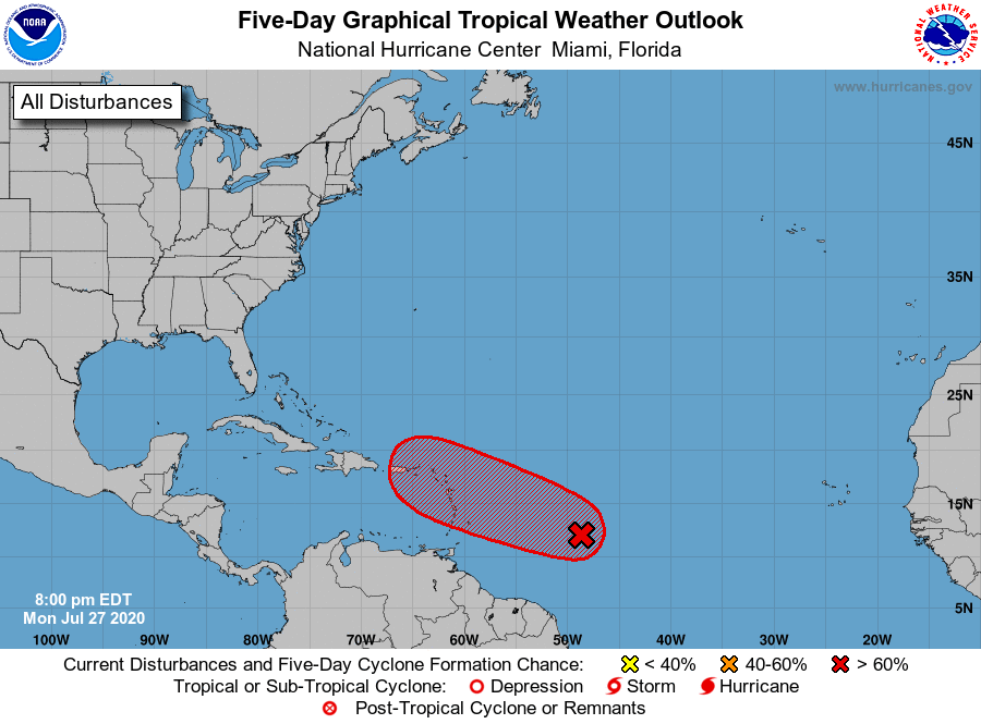Según los pronósticos la perturbación tendría un 30% de posibilidades de convertirse en un ciclón tropical