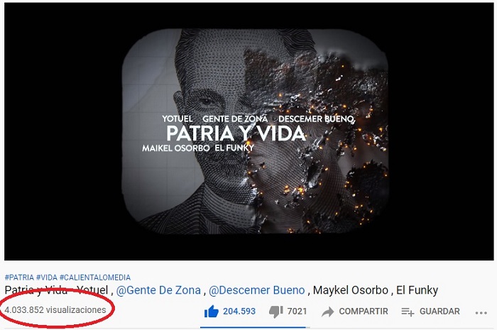 ¡Patria y Vida ya casi tiene 10 millones de reproducciones en YouTube!
