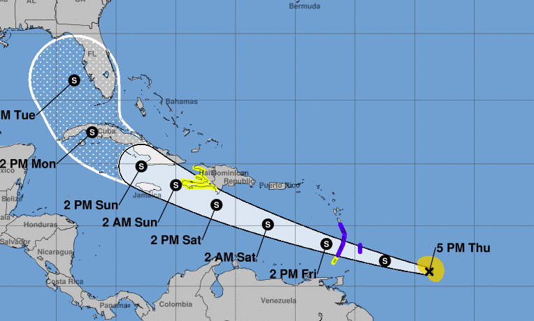 Los pronósticos sugieren que el huracán se moverá relativamente rápido hacia el oeste-noroeste durante los próximos días