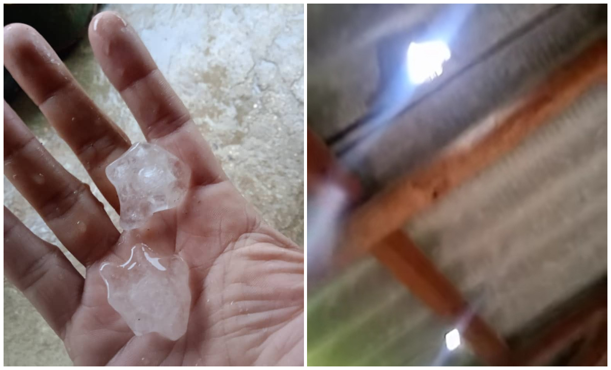 Algunos de los granizos más grandes provocaron daños leves a algunas de las estructuras más frágiles en la zona afectada
