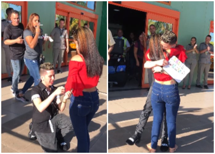 Hermoso momento en el que un cubano pide la mano de su novia en el aeropuerto