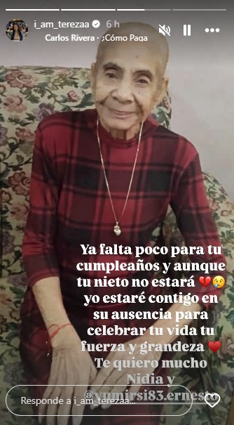 En sus historias de Instagram, Teresa compartió una fotografía de la anciana, dedicándole un mensaje con cariño y reiterando su compromiso de estar con ella en esa fecha tan especial.