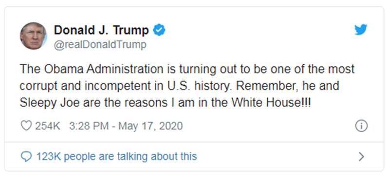 El presidente de los Estados Unidos, Donald Trump, calificó de “incompetente y corrupta” la administración del expresidente Barack Obama, después que este criticase su gestión.