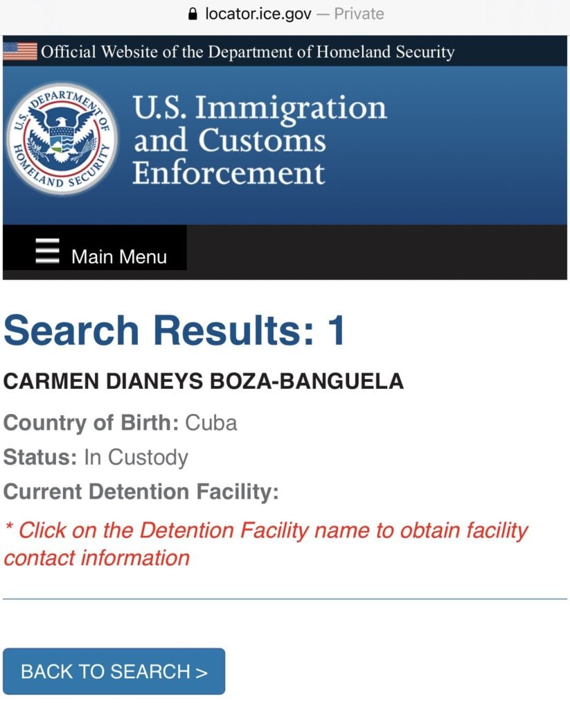 Según detalla Cubanos por el mundo, la información se puede confirmar al ingresar los datos de los tres isleños en el sistema de búsqueda de detenidos de ICE.