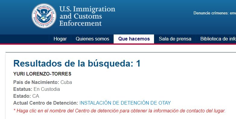 Carmen Dianeyz Boza Banguela y Mercedes Díaz Gómez, de 30 años de 32 años aparecen en el sistema pero sin detallar su ubicación actual. Sobre Yuri Lorenzo Torres, de 41, si especifica que se encuentra detenido en el Centro de Migración de Otay.