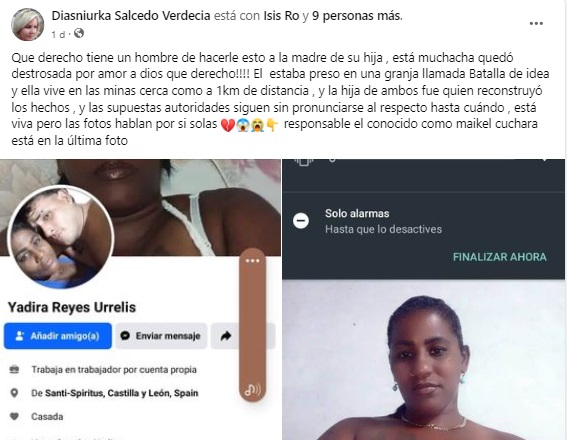 Varios usuarios en redes sociales denunciaron que un preso prófugo de la justicia agredió brutalmente a la madre de su hija en la provincia de Sancti Spíritus, dejándola gravemente herida y mutilada tras el ataque.