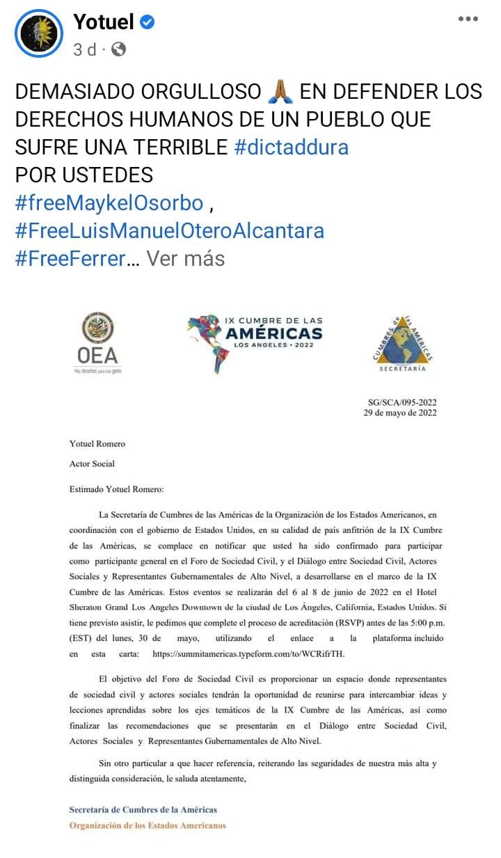 La expectativa sobre la actuación de Yotuel en la cumbre permanece desde el pasado 30 de mayo, cuando compartió en sus redes sociales la invitación para participar en el evento.